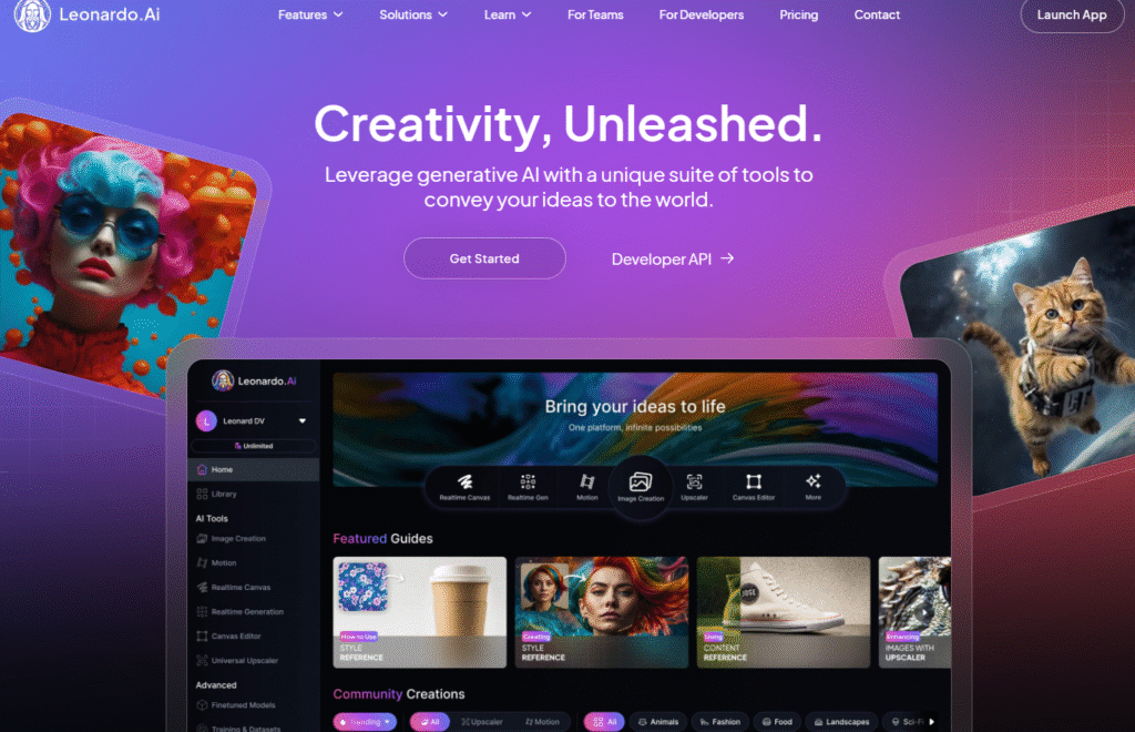 Leonardo AI is one of the most popular AI image tools right now. It gives you daily free credits, and the image quality is stunning. You can generate realistic portraits, anime characters, 3D renders, and even Disney-style images. It’s beginner-friendly and perfect for graphic creators.